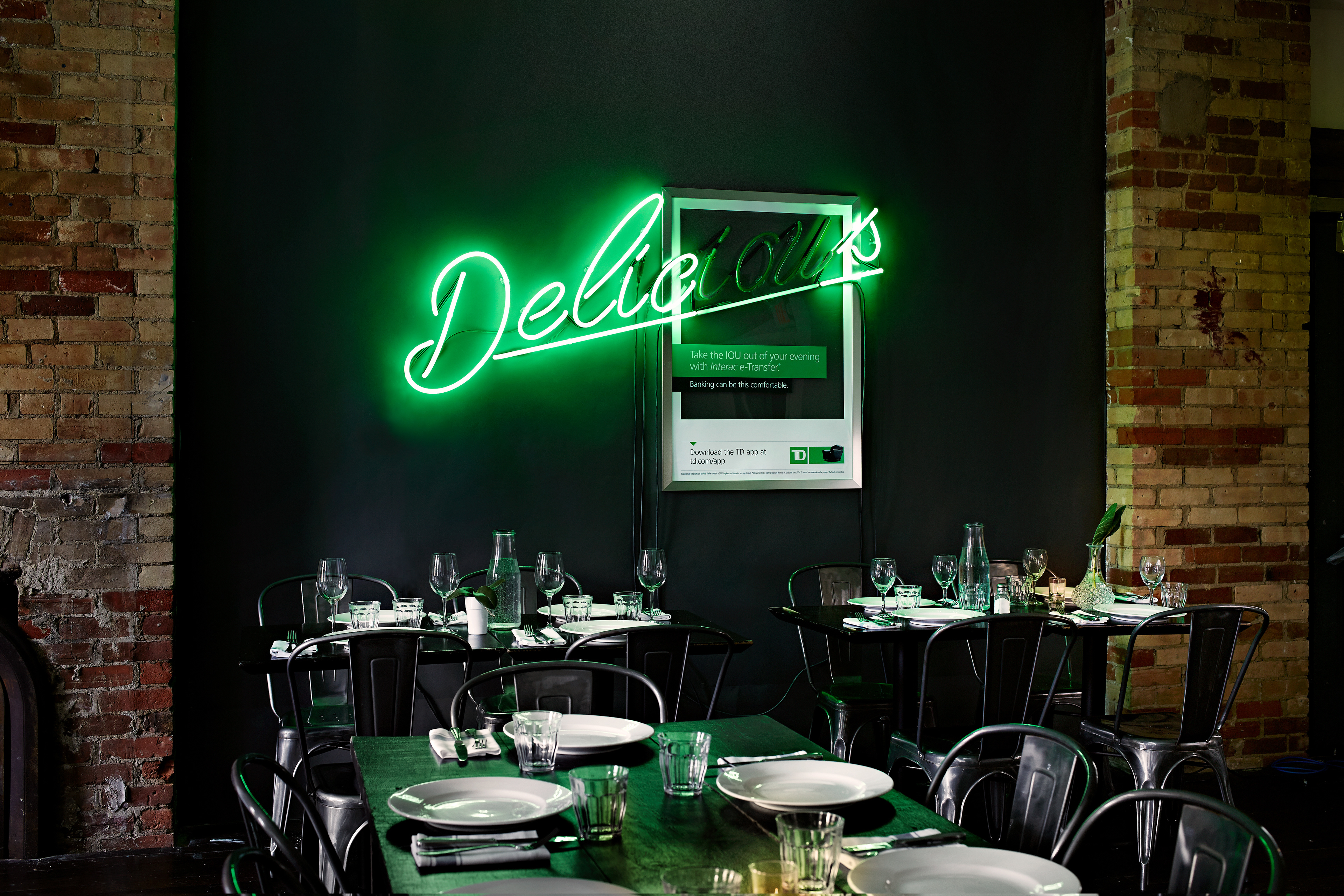 To demonstrate how TD removes the hassle of IOUs from your everyday life, we created signage that literally dropped the three letters from their headlines. These installations were placed in locations where people tend to borrow money: restaurants, cafés, and in queues outside of venues.